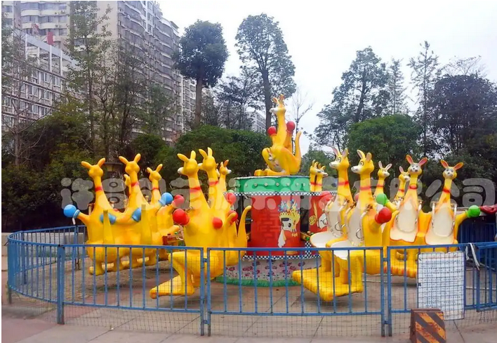 La máquina de canguro una gran instalación de atracciones al aire libre. Al correr la cabina a través del brazo grande conectado alrededor de la columna central para hacer la acción de elevación y elevación de salta . El conjunto forma una ola grande, una ola pequeña, la misma elevación y caída y una variedad de modos de operación ondulados, lo que hace que los visitantes tenga una experiencia emocionante. Es muy adecuado para grandes parques de atracciones y parque diversion .