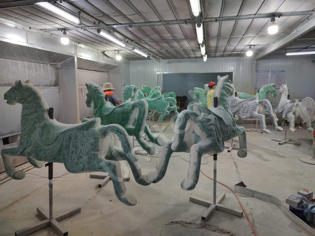 Este fotos este estructura de carrusel 24 asiento y fibarvideo de caballo . empieza a pintar el color .